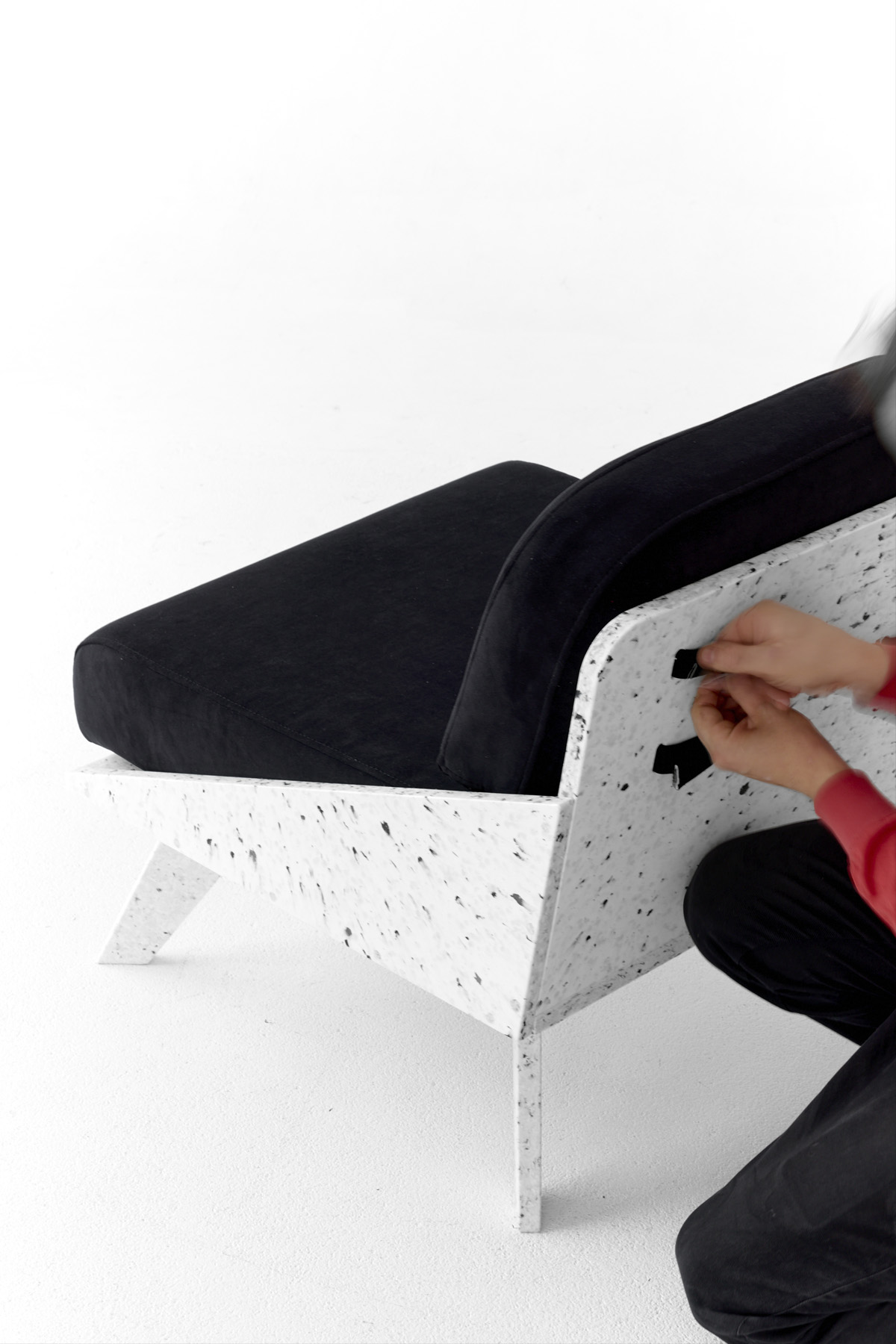 Разборная конструкция. Подушки фиксируются ремнями на липучках. Чехлы на молнии.
